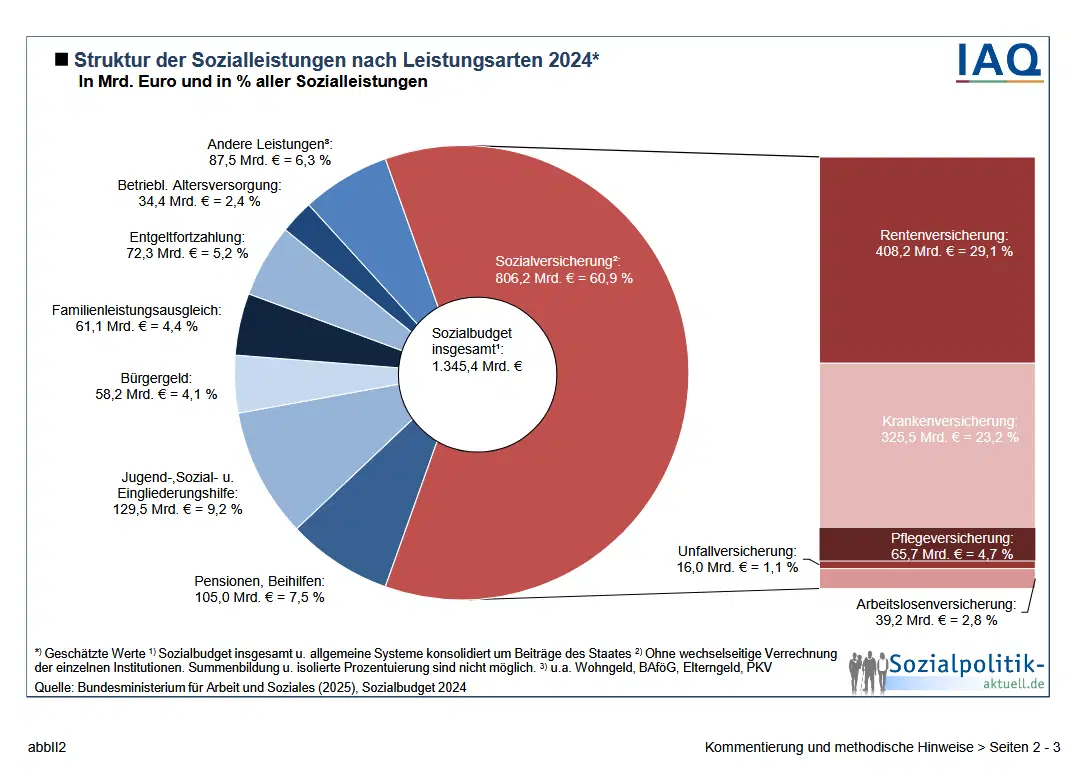 Almanya’da sosyal yardımların toplamı 2024 yılında 1 trilyon 354 milyar Euro oldu. Yardımlar bir önceki yıla göre yüzde 14,8 arttı. Alman İstatistik Dairesi rakamları açıkladı. 2025 yılı Ağustos ayı rakamlarına göre tüm sosyal yardımları yapılan harcamalar önemli ölçüde arttı. Alman Çalışma Bakanlığı da bu rakamları bir grafik ile yayınladı.