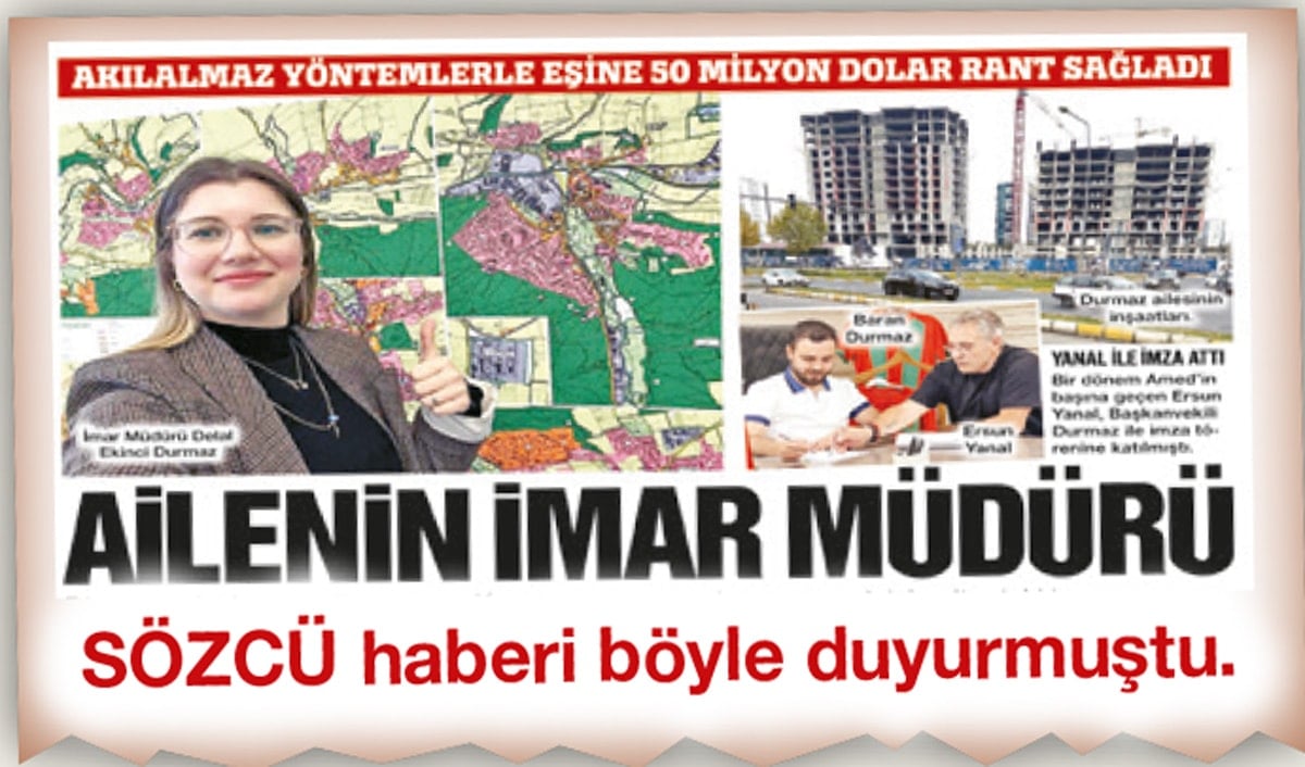 Söz konusu arsa, Diyarbakır Büyükşehir Belediyesi İmar Dairesinde Müdür olan Delal Ekinci Durmaz’ın eşi Baran Durmaz’a ait çıkmıştı. Arazi bir firmaya kat karşılığı anlaşmasıyla verilmişti.
