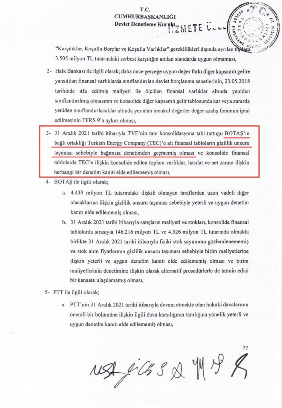 Kaynak: Cumhurbaşkanlığı Devlet Denetleme Kurulu Raporu!